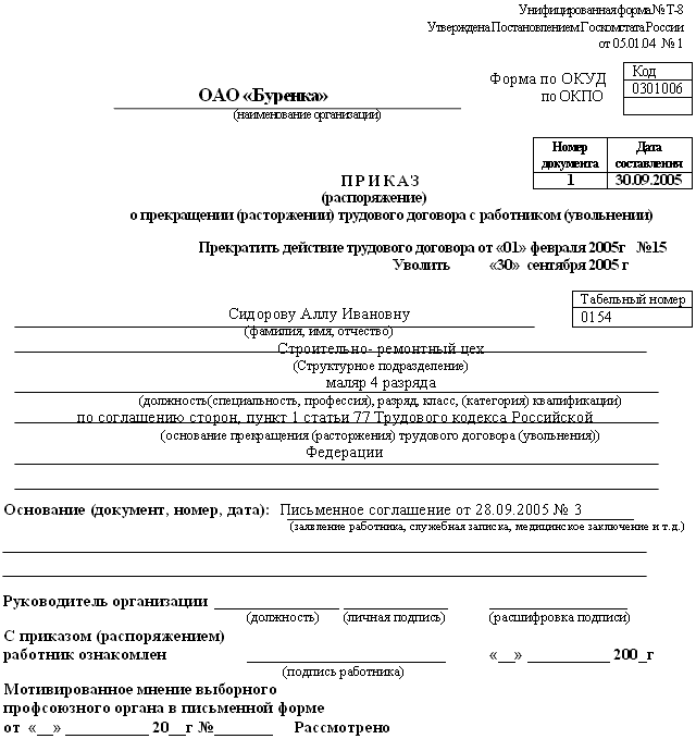 В нашей стране с 01 января 2004 года введен новый образец трудовой книжки (постановление Правительства РФ от 16 апреля 2003Pг «О трудовых книжках» ЂЂЂ 225). Причем имеющиеся у работников трудовые книжки старого образца действительны и обмену на новые не подлежат. Министерство труда и социального развития России разработало и утвердило «Инструкцию по заполнению трудовых книжек». Данный документ ЂЂЂ нормативный правовой акт, носящий межведомственный характер, являющийся обязательным для исполнения всеми организациями и должностными лицами. Если прежняя Инструкция регулировала все вопросы, включая правила ведения, учета, заполнения, хранения трудовых книжек, то новая Инструкция устанавливает лишь порядок заполнения трудовых книжек, вкладышей к ним и дубликатов. Прочие вопросы регулируются «Правилами ведения и хранения трудовых книжек, изготовления бланков трудовой книжки и обеспечения ими работодателей».